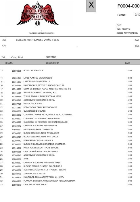 Nos ocupamos de TODA LA LISTA OFICIAL, incluyendo también los extras de perfumería/ferretería.