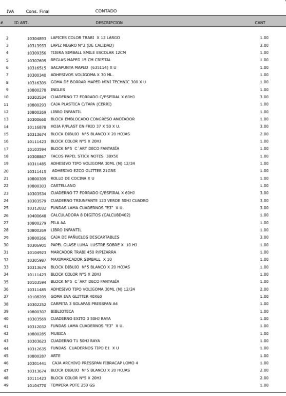 Nos ocupamos de TODA LA LISTA OFICIAL, incluyendo también los extras de perfumería/ferretería.