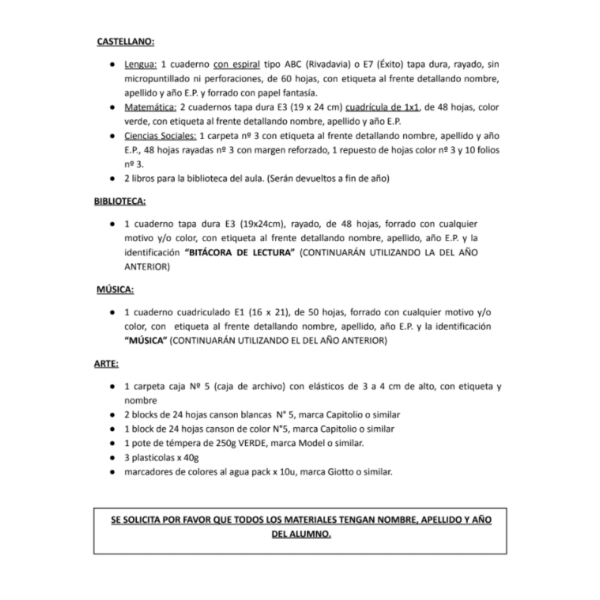 • El resto de los útiles y cuadernos van etiquetados y listos para usar.