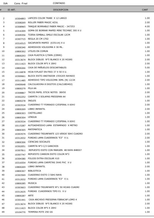 Nos ocupamos de TODA LA LISTA OFICIAL, incluyendo también los extras de perfumería/ferretería.