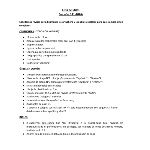 Útiles completos + etiquetas personalizadas – Todo en un solo pedido.